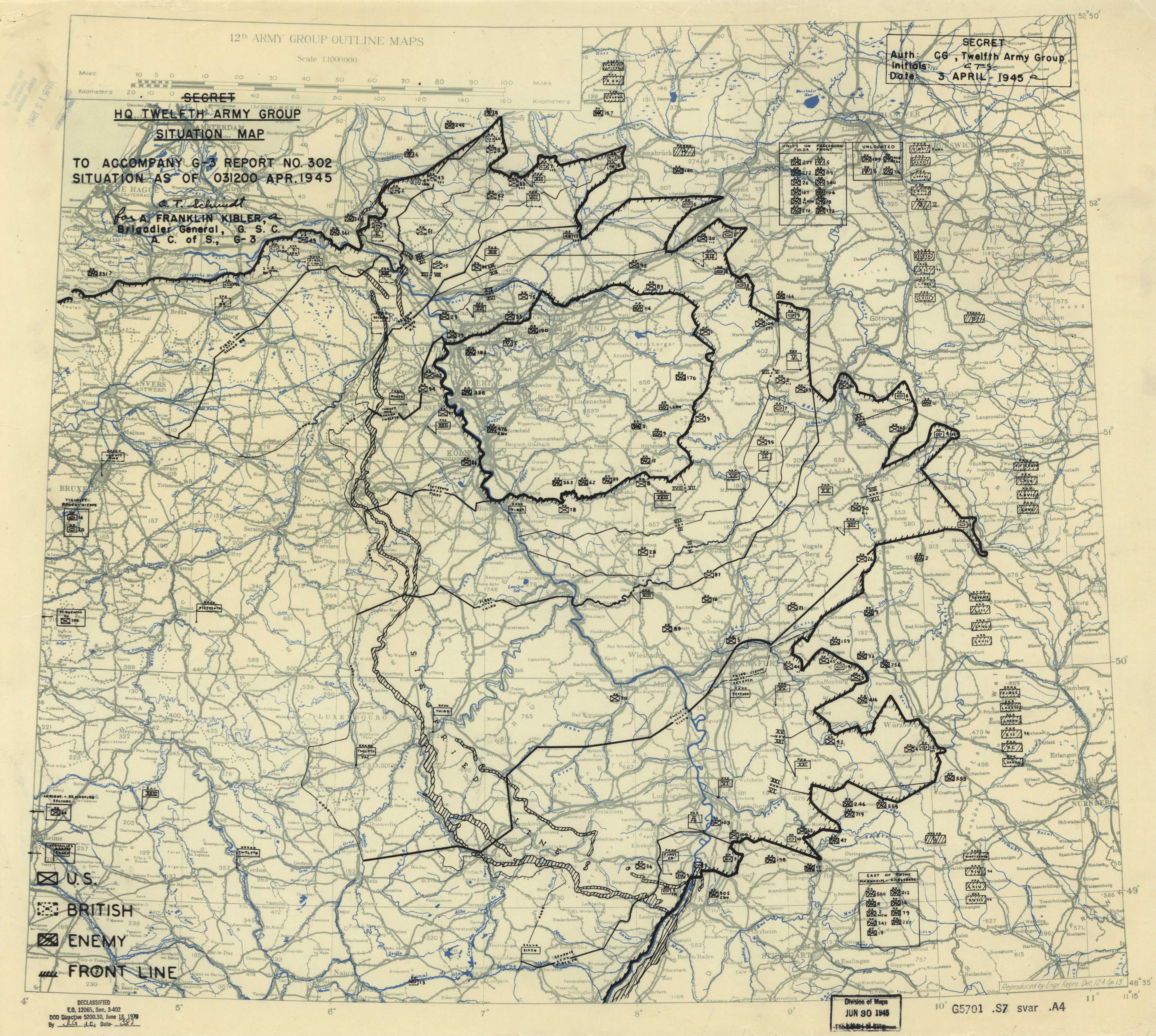 The month of April opened with weather too poor for combat operations on April 1st and 2nd. Capt. Henry W. Browman moved to the 97th Combat Wing (L) on temporary duty for a period of thirty days. S/Sgt Henry Nowosieski Jr. after completing his tour of missions left the squadron on the 3rd of April for the 70th Reinforcement Depot and the first step of his journey home. The 1st mission of the month, in which 36 A-26’s and 2 PFF aircraft participated, was against Hameln Marshalling Yards. 12 aircraft of this squadron were on the mission. Due to cloud cover, there was no photo coverage, but crews believed that results were good. Again on the 4th of April cloud cover prevented observation of results of the mission against Crailsheim Barracks. On this dated notice was received of promotions to 1st Lt of 2nd Lt Bower, Ford and Turner.