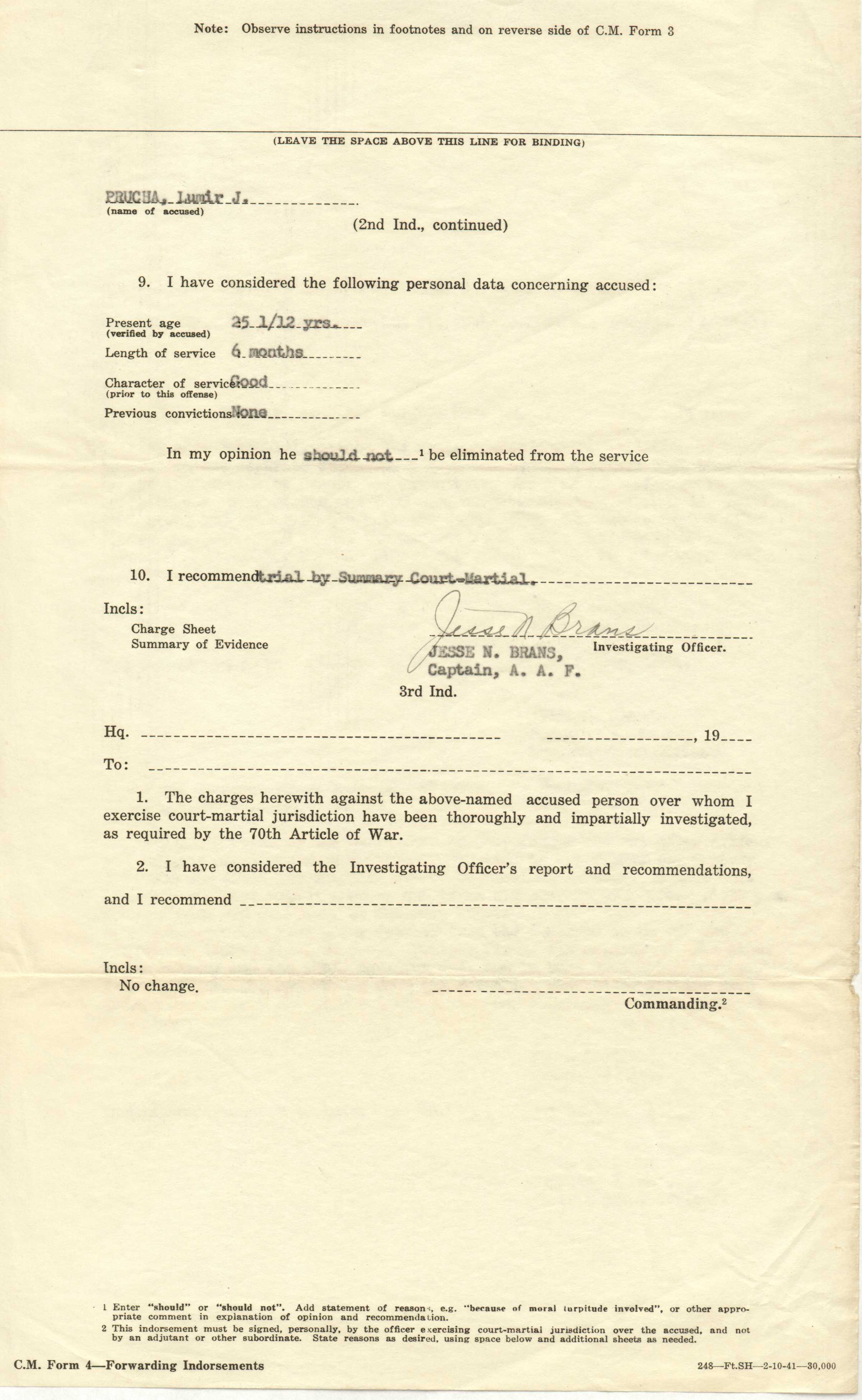 Commission summary sheet - Component Grade From To Enl (RA) Pvt 12 Dec 1941 14 Aug 1942 AUS A/C 15 Aug 1942 28 Apr 1943 AUS 2d Lt. 29 Apr 1943 present