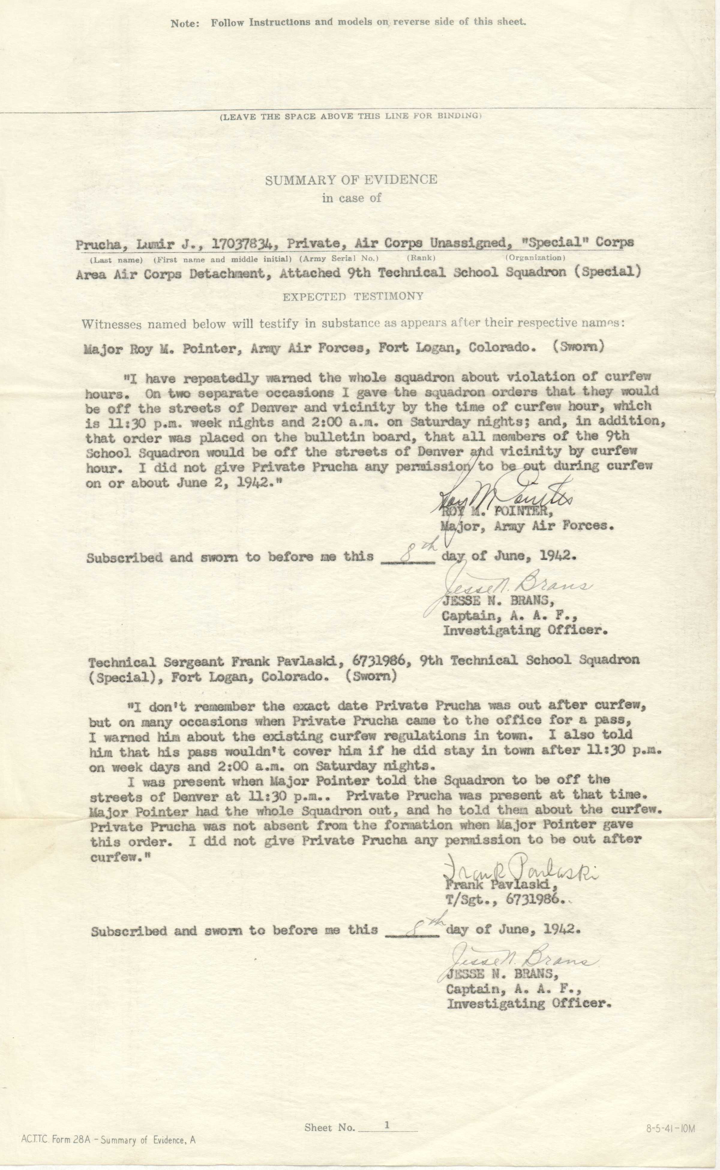 Extract - Par. 1 - named units/officers WP o/a 4 Oct 1942 to Muskogee Army Air Fld, Muskogee, Okla - Temporary change of station. 2nd Lt Lumir J. Prucha, 646th Bomb Sq (L), 410th Bomb Gp (L), named on page 10 of Transfer List #37. (Page 1 of 17)