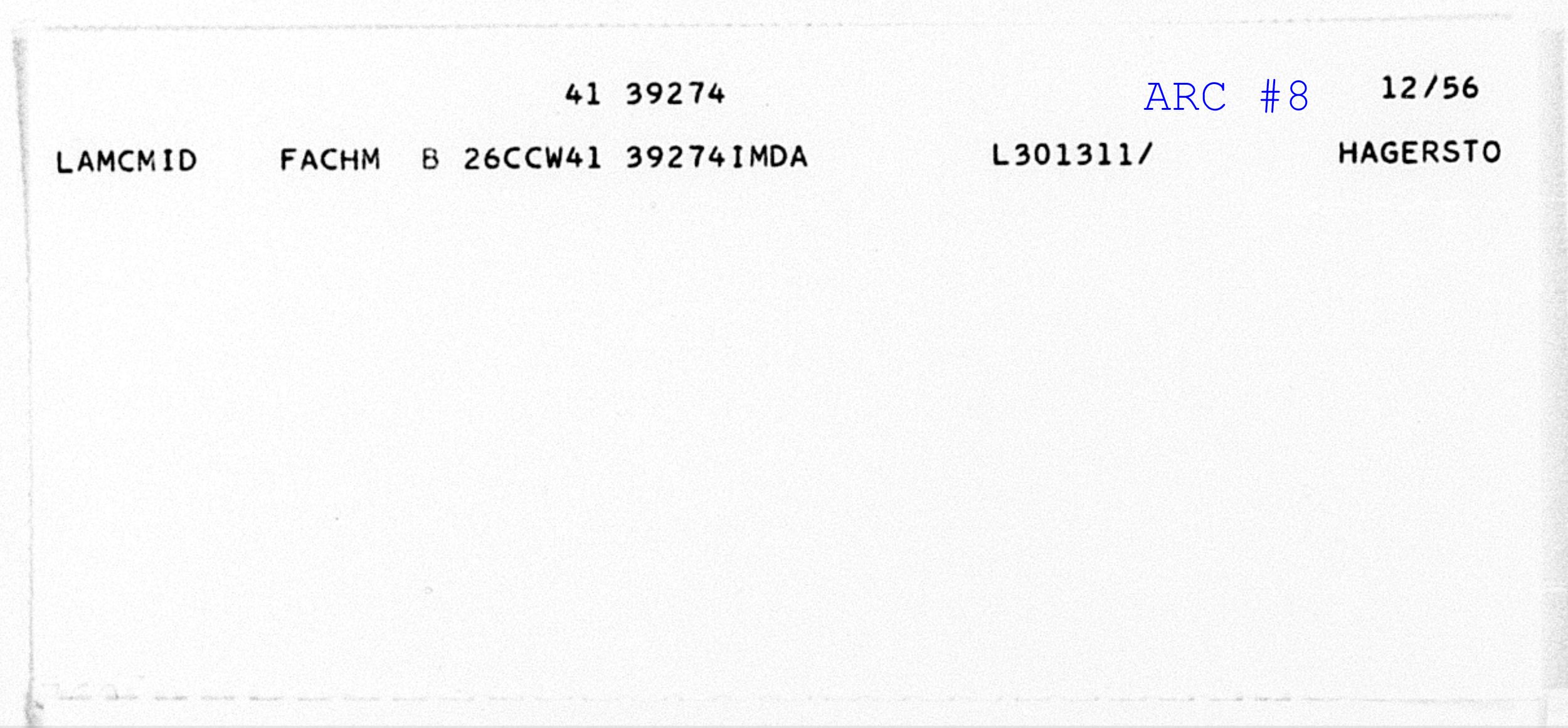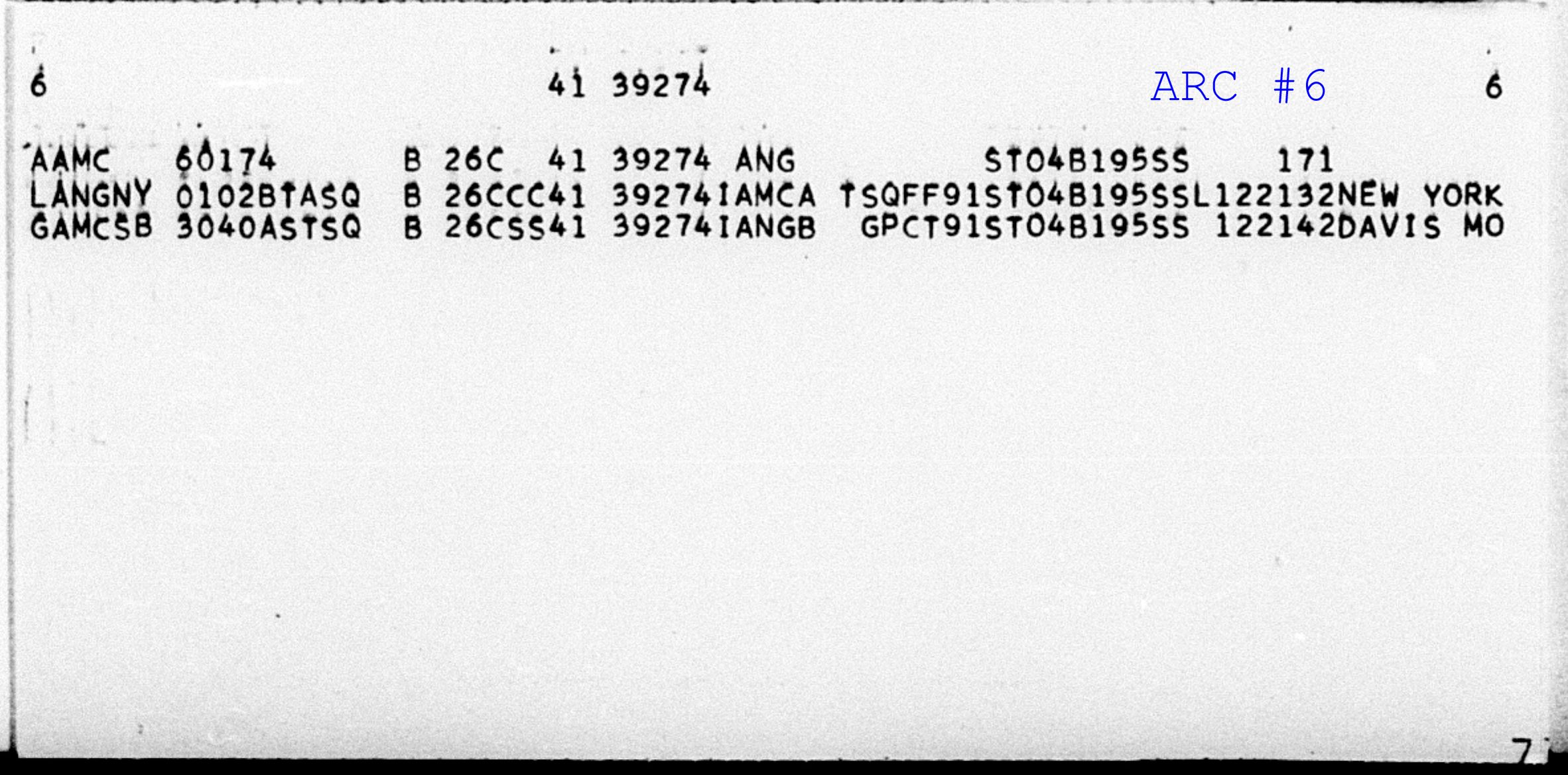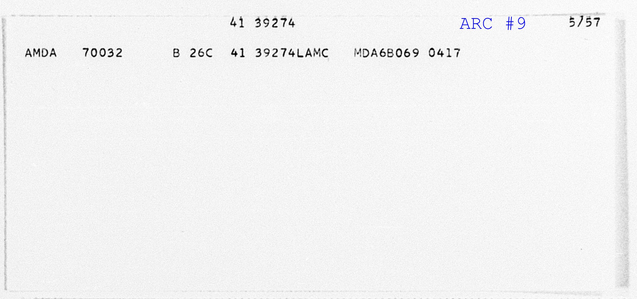 Line 1 "Small Card" Header Record - Displays Serial Number usually with a form of date in upper-right corner of the ARC