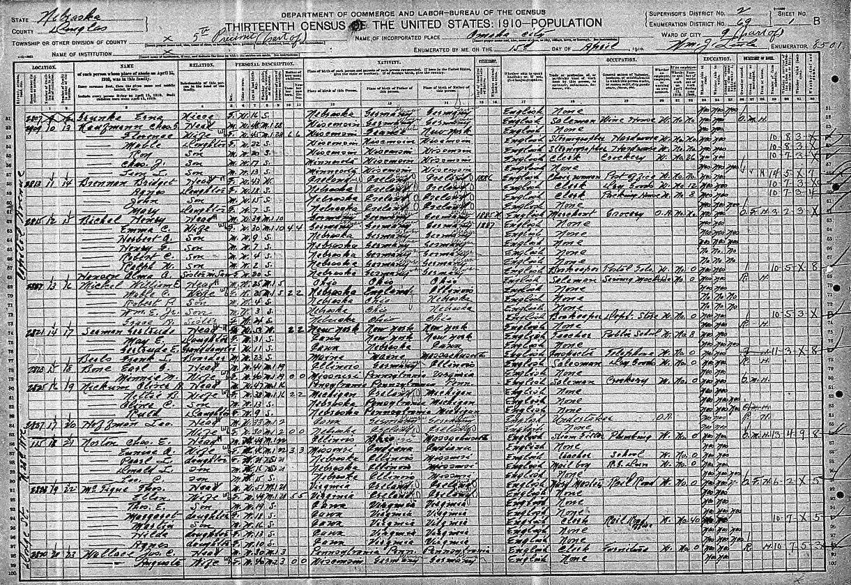Brennan, Bridget Agnes (Dowd) Family, 1910 US Census